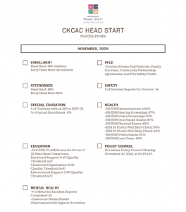 As a non-profit agency, Central Kentucky Community Action, Inc. is required to inform the local community of the Area Board of Director’s Meeting which is open to the public. The meeting will be on Friday, December 12, 2025 at 9:30 AM EST. For more information, call the Central Office at 270-692-2136.