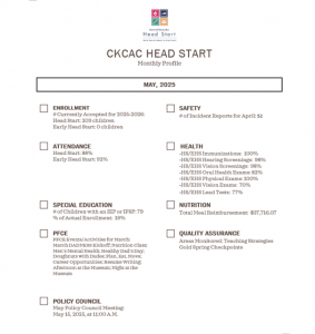 Enrollment continues to be a top priority as we prepare for the 2025–2026 program year. Our team is actively recruiting new families and staff members. If you know anyone with children who would benefit from Head Start or someone passionate about working with young children, we encourage you to send them our way.