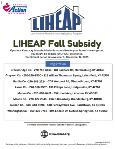 Community Action Kentucky administers LIHEAP in partnership with the Kentucky Cabinet for Health and Family Services, which receives funding as a pass-through block grant from the U.S. Department of Health and Human Services.
